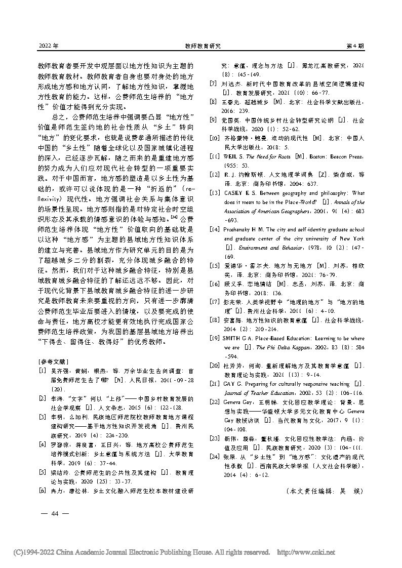 公费师范生培养的“地方性”价值取向研究