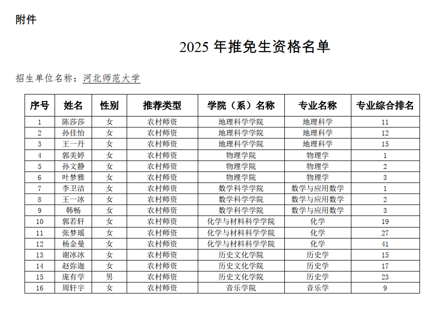附件:2025年硕师计划推免名单